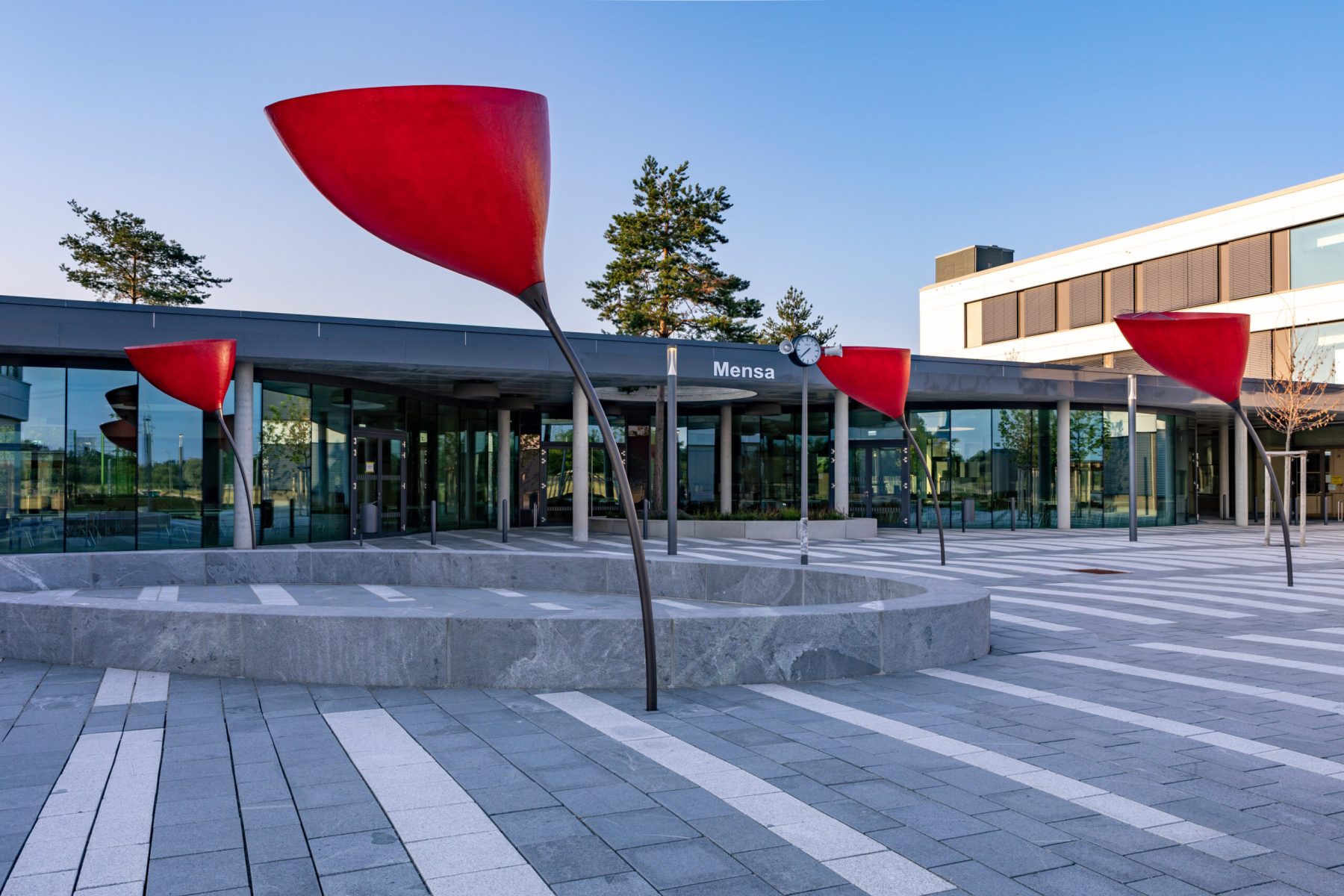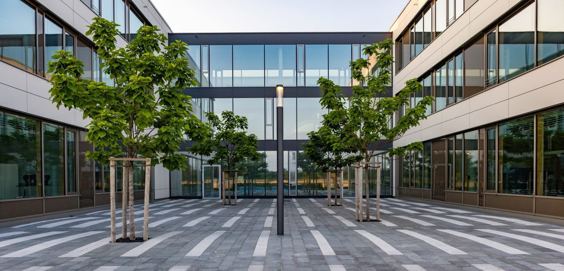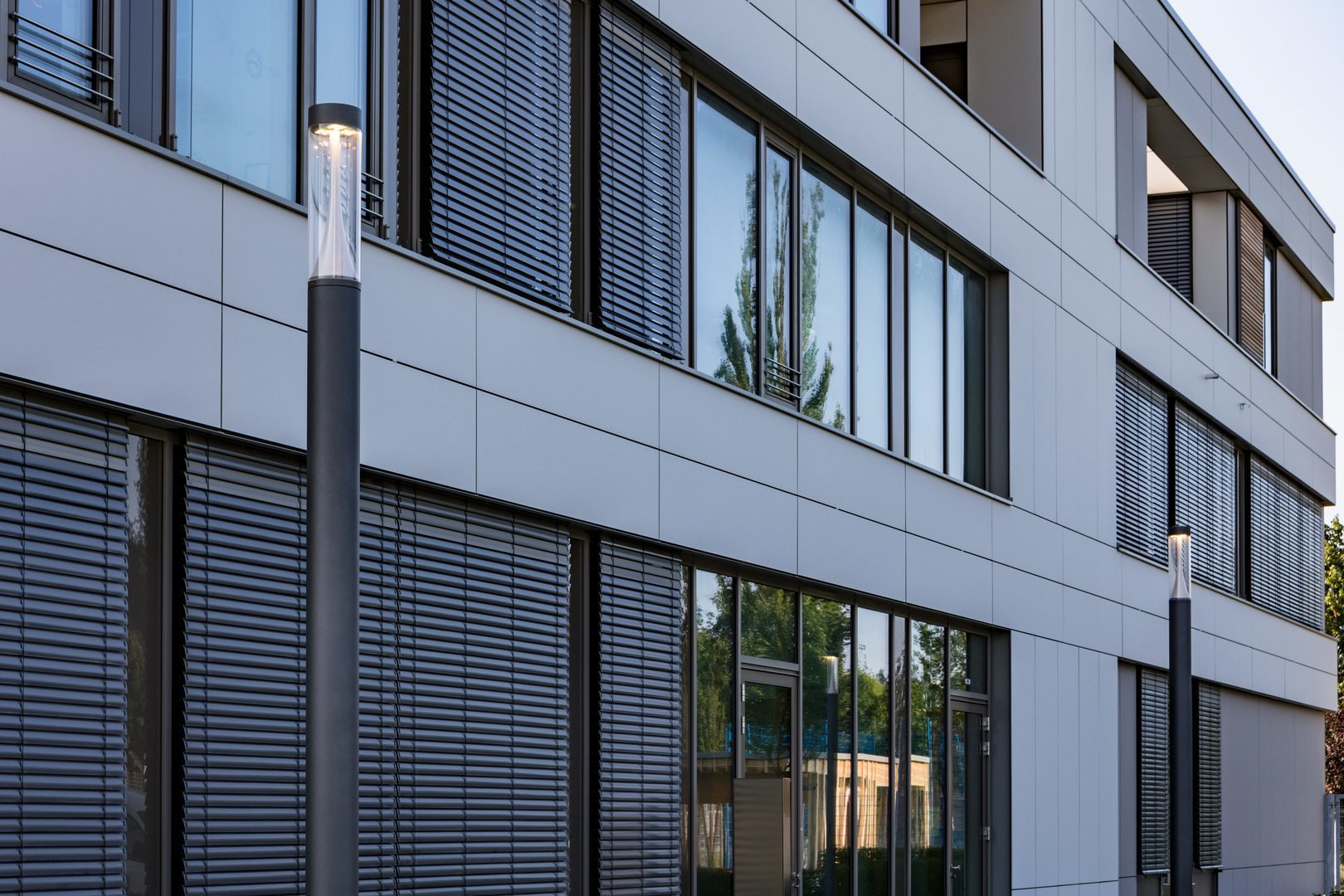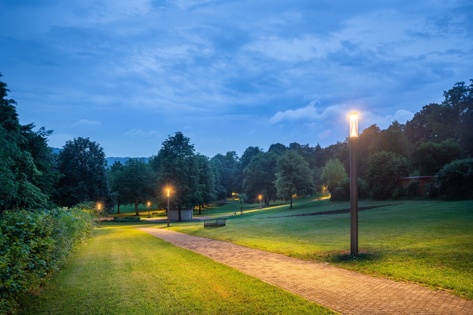 Gångzoner, torg, stigar i parker och grönområden, bostäder, trappor, entréer, runt byggnader.