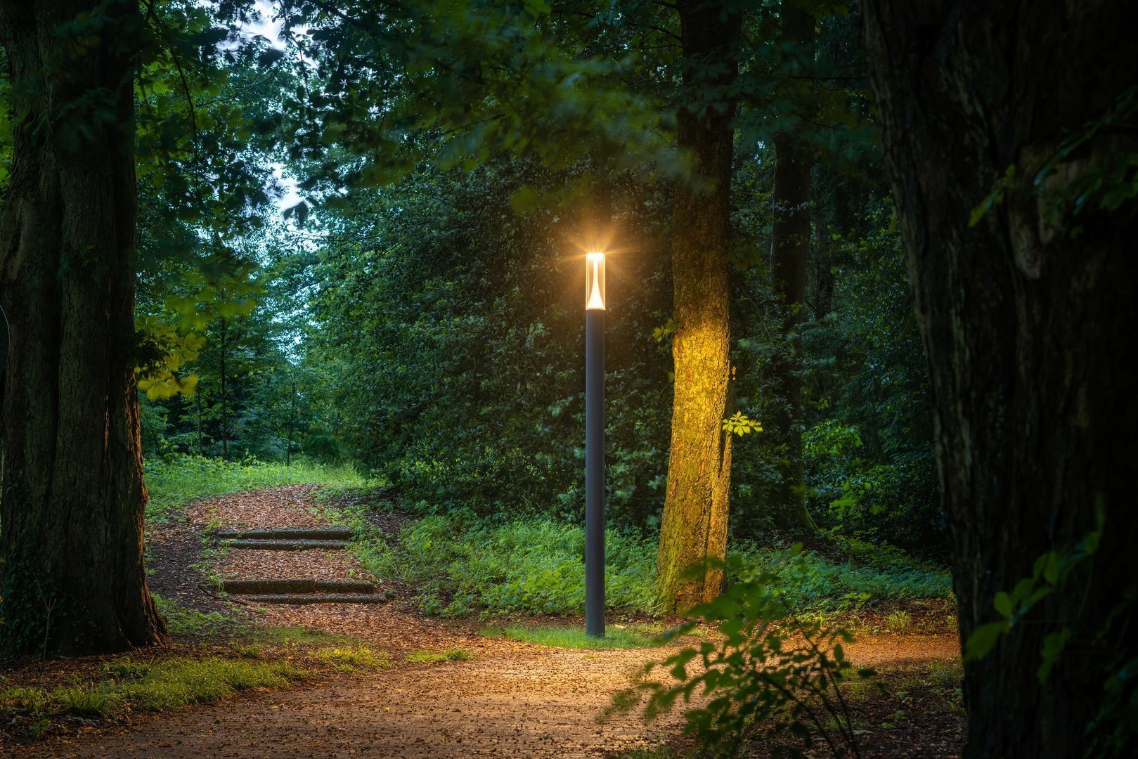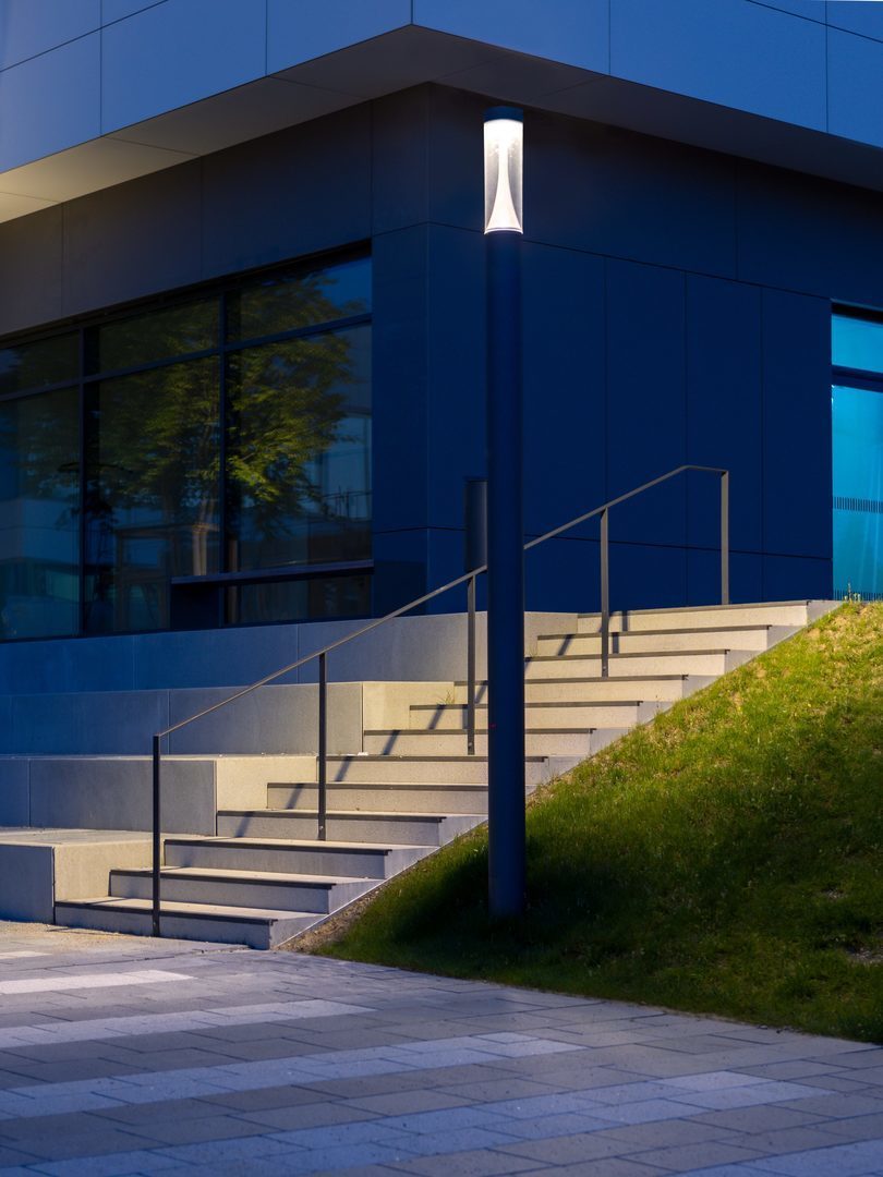 Stolpe av extruderad aluminiumprofil, Ø 170 mm, armaturhöjd 2600/3600 mm. Antracitfärg, liknande DB703 med metalleffekt, mycket väderbeständig, pulverlackerad. Extra korrosionstålig version för kustnära montage finns tillgängligt på förfrågan. Cylindriskt hölje av slagtålig PMMA, klar. Med stolplucka och integrerad kopplingsdosa för säkring till 16 A. Inmatning för 2 kablar max 5 x 6 mm². Kapslingsklass IP54 för kopplingsdosa. Säkerhetsklass (EN 61140): II, kapslingsklass (DIN EN 60529): IP65, slagtålighetsnivå enligt IEC 62262: IK04. Vindyta fw 0,440 m².