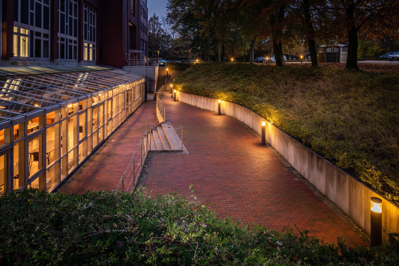 Gångzoner, Arkader, Gångvägar i parker och grönområden, Bostäder, Trappor, Tillträdesplatser, Ljus runt huset. För belysning av gångvägar med bredder upp till 3 m.