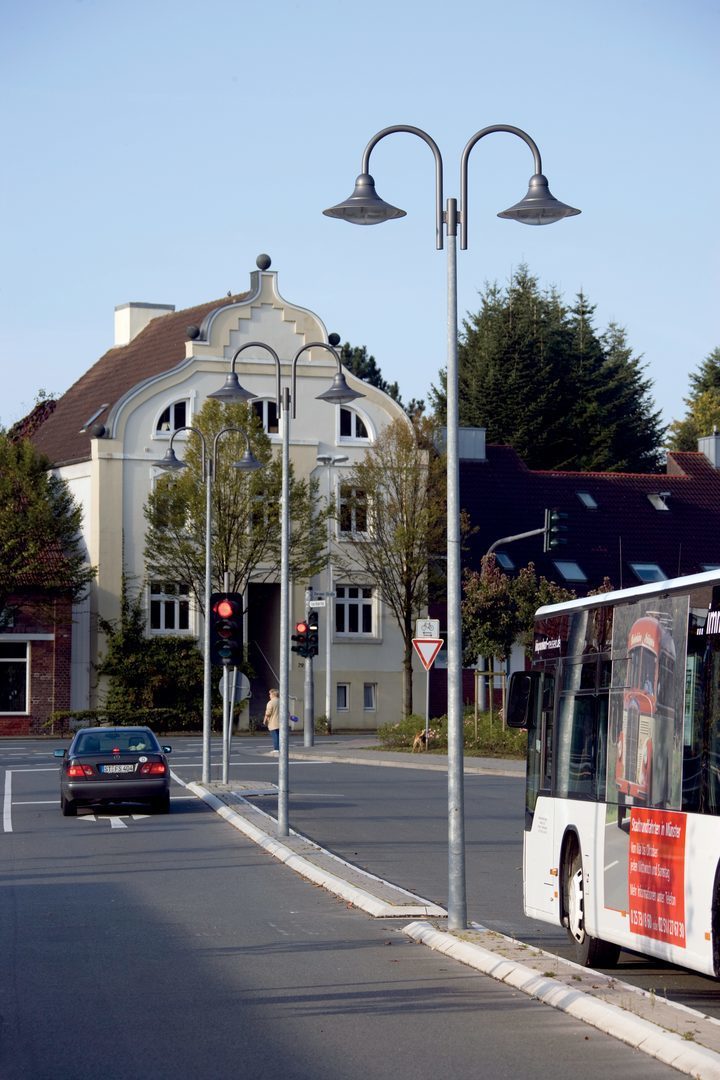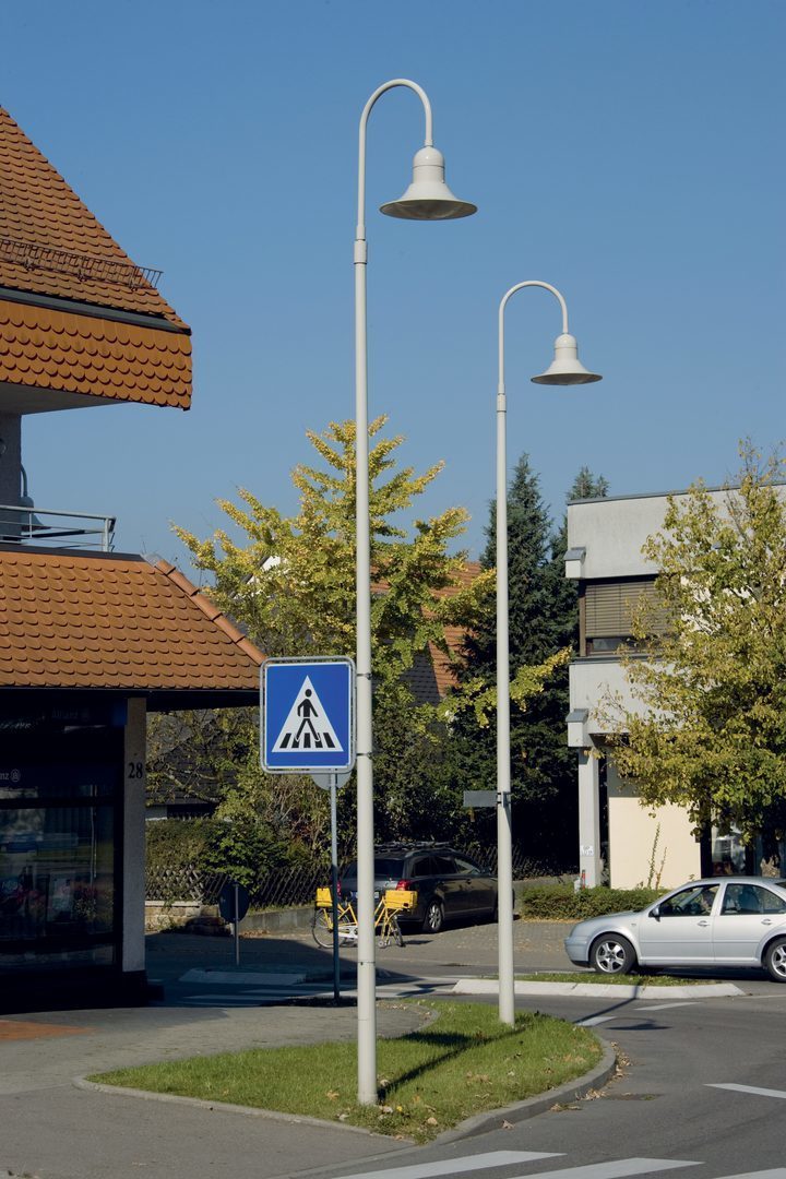 The luminaire is compliant to the requirements of EN 60598 and is designed for the effects of wind compliant to EN 1991 (Eurocode) with basic wind velocity of up to 30m/s (corresponding to wind zone 4 in Germany) in terrain category 1. A snow load (up to 1kN/m2) and icing (up to 2 cm) at a mounting height in accordance with the mounting instructions are taken into account. Not considered are exposed locations (e.g. bridges, installation on buildings or directly adjacent to railway tracks). Impact loads are not considered.