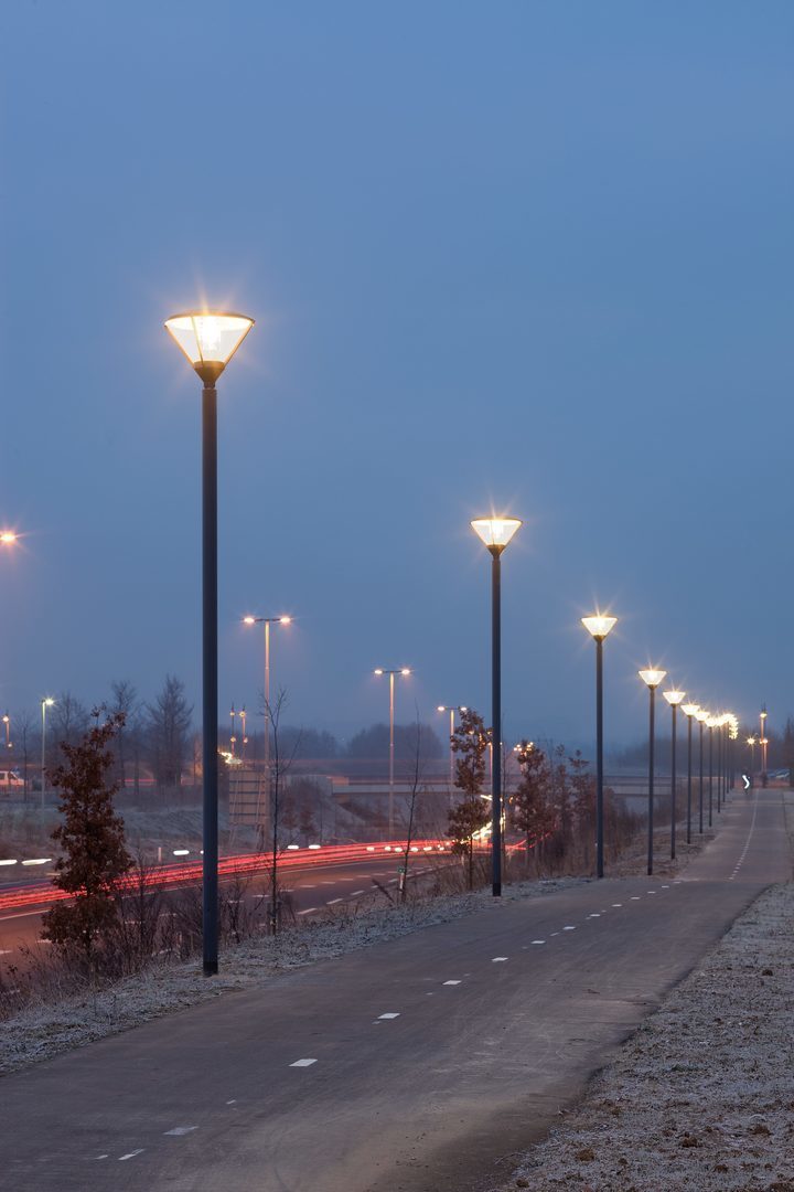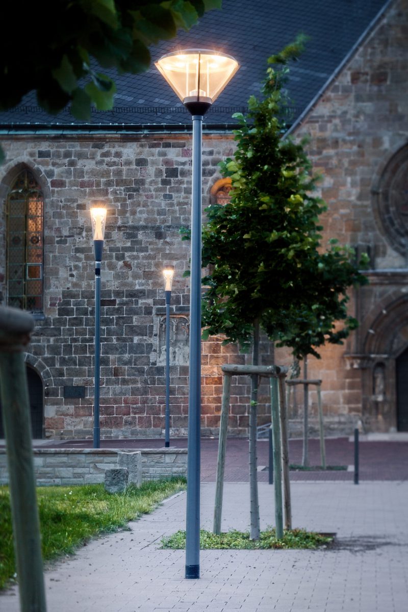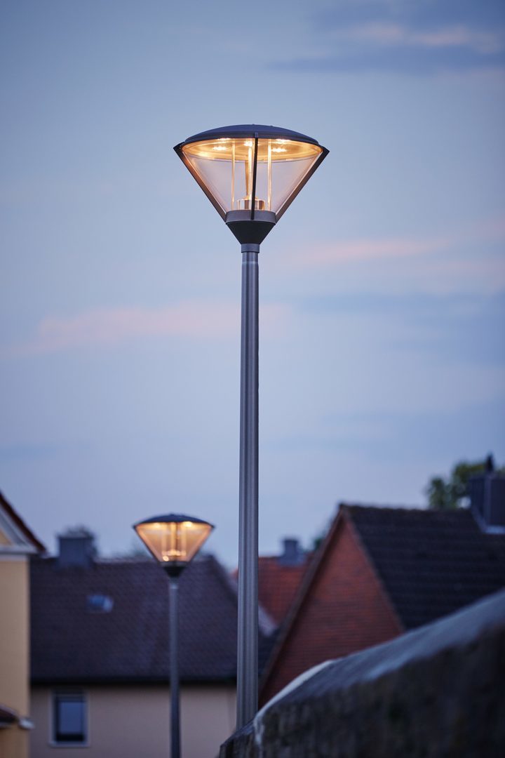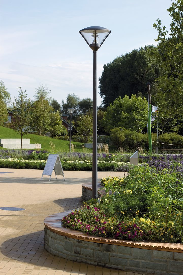Dekorativa armaturer för stolpmontage. Med intelligent etikett för snabb åtkomst till armaturinformation med hjälp av QR-kod.