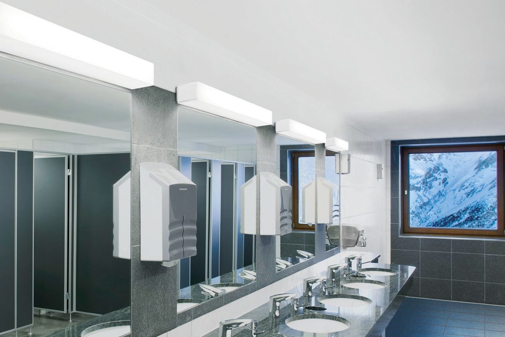 På grund av de många reflekterande ytorna i ett badrum blir det till en stor utmaning att skapa bländfritt harmoniskt ljus. Den nya väggmonterade spegelarmaturen Acuro uppfyller lätt detta krav på ljuskvalitet och övertygar med sitt pålitliga skydd mot stänkvatten samt en tilltalande design. Dessa armaturer som är utrustade med LED-teknologi har dessutom hög livslängd och är nästintill underhållsfria.