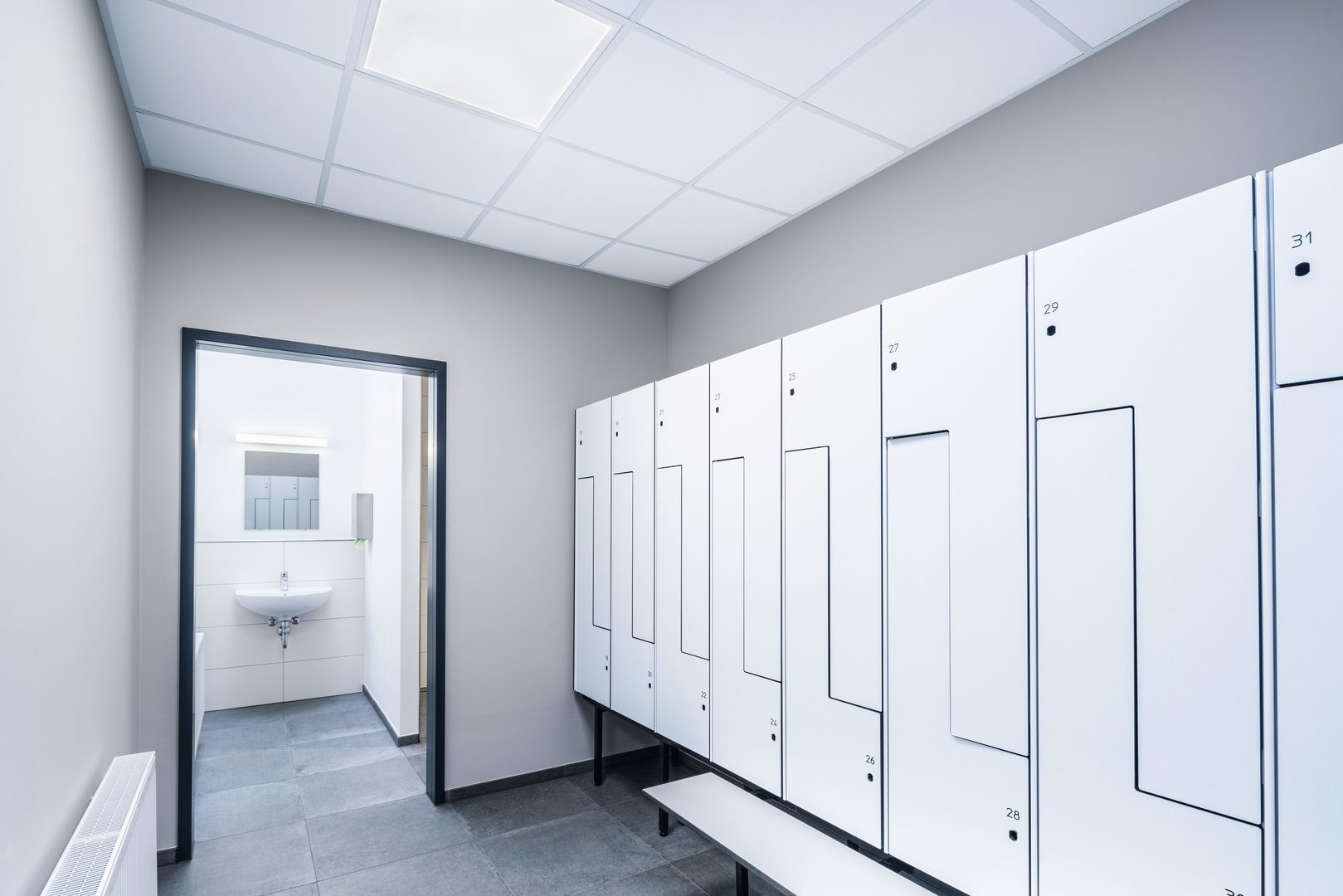 Med PMMA-täckglas, opaliserat. Finstrukturerad yta. Med symmetriskt bredstrålande ljusfördelning. Bländningsbegränsning (EN 12464-1) enligt UGR < 25. Genomsnittlig nominell livslängd L80(tq 25 °C) = 50 000 h.