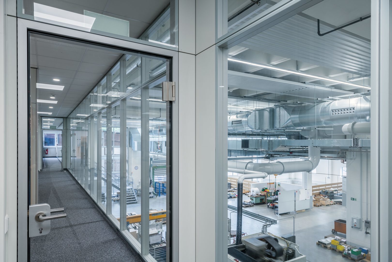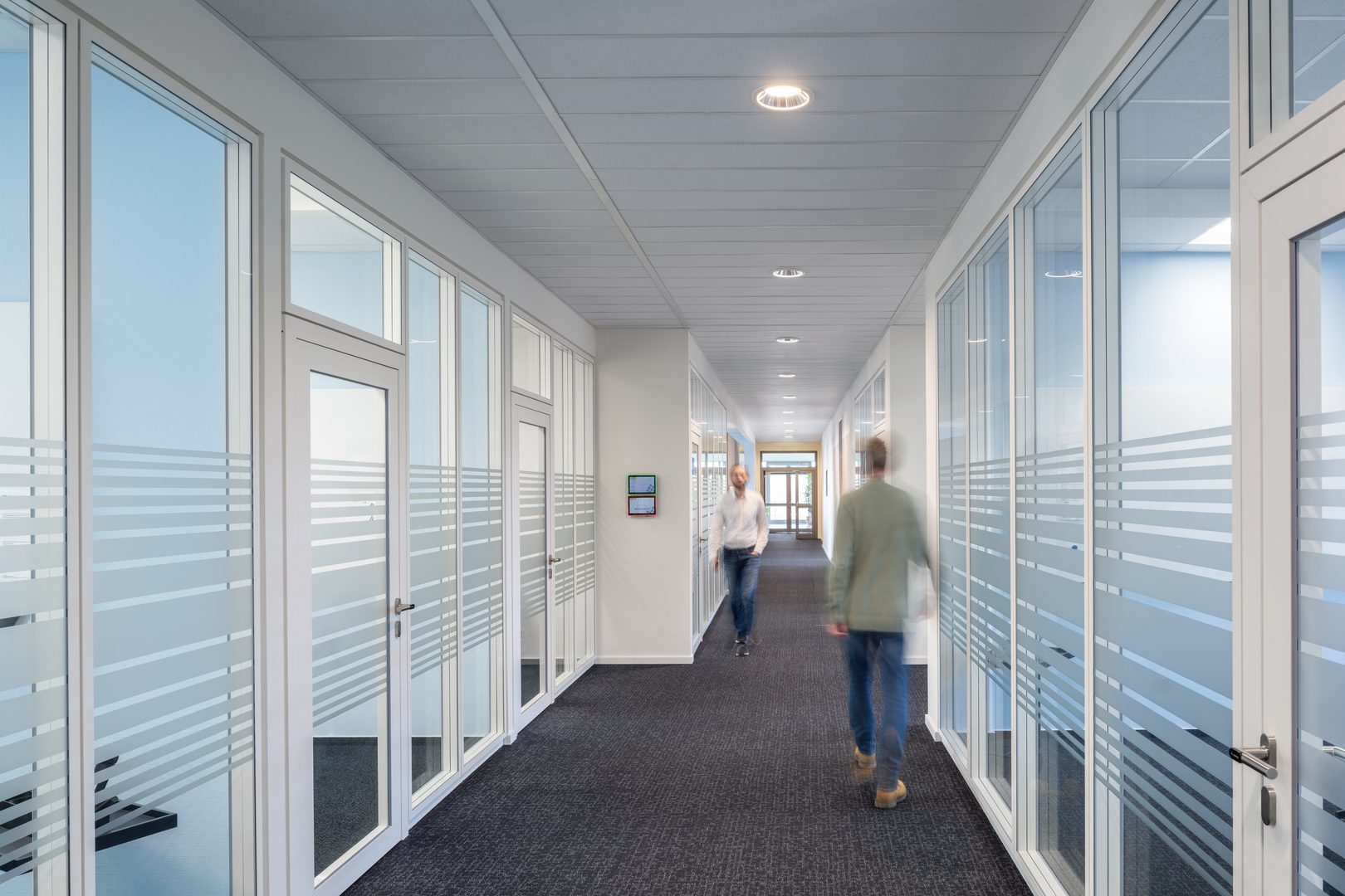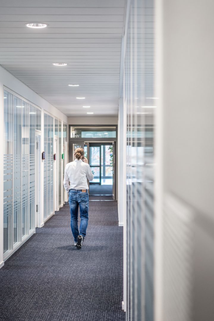 Med sluten, prismatisk PMMA-diffusor. Högblank eller vit reflektor. Med rotationssymmetriskt djup-/bredstrålande ljusfördelning.