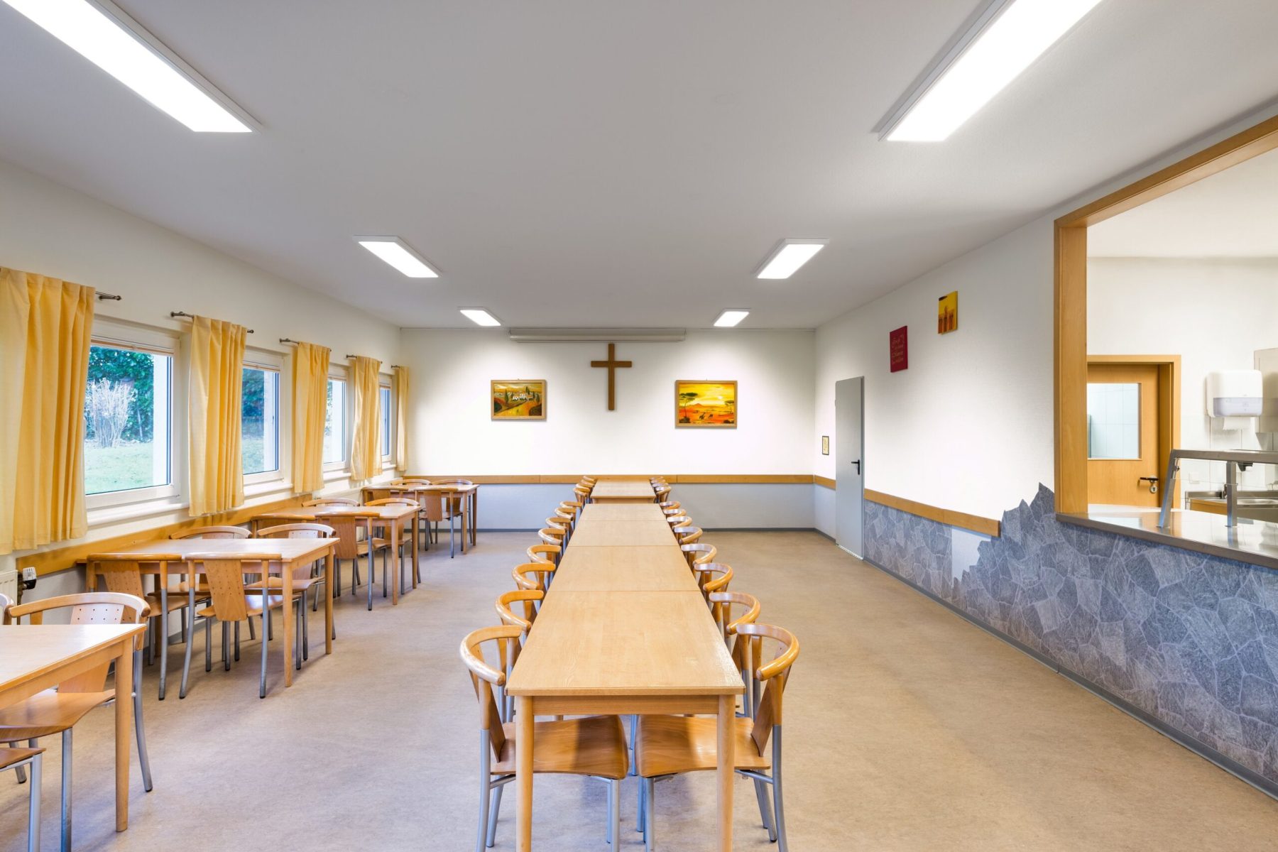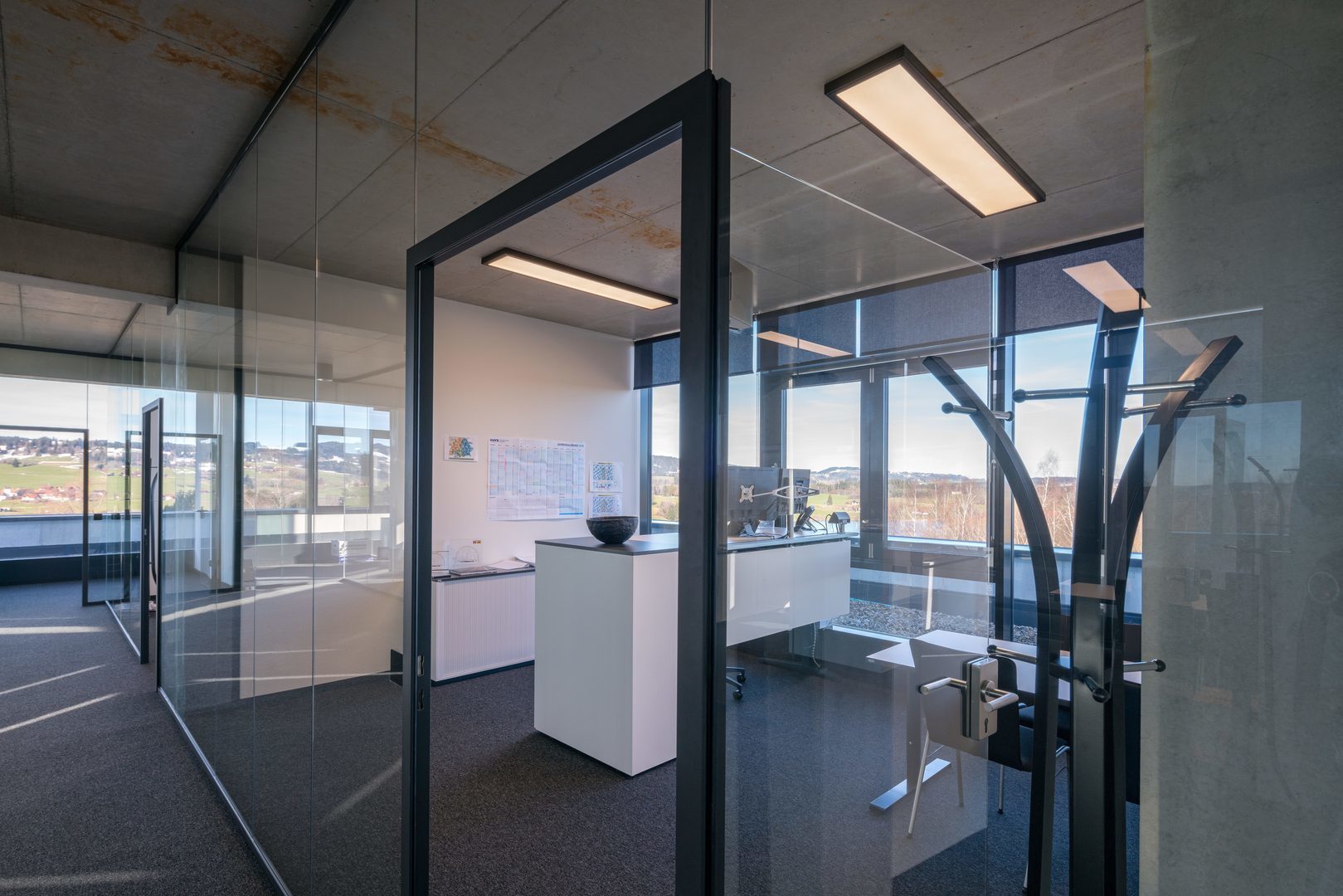 Det optiska systemet består av ett genomskinligt PMMA-glas med hög transmissionsfaktor. Med symmetrisk begränsad bred ljusfördelning. Bländningsbedömning enligt UGR-klassning (EN 12464-1) < 19. Lämplig för bildskärmsarbetsplatser enligt EN 12464-1 via begränsad luminans L ≤ 3000 cd/2 för strålvinkel över 65° runtom. Harmonisk ljuseffekt tack vare homogent belyst ljusutsläpp. Individuell design av ljusutsläppsytan (t.ex. med tryck) och andra speciallösningar är möjliga på begäran.