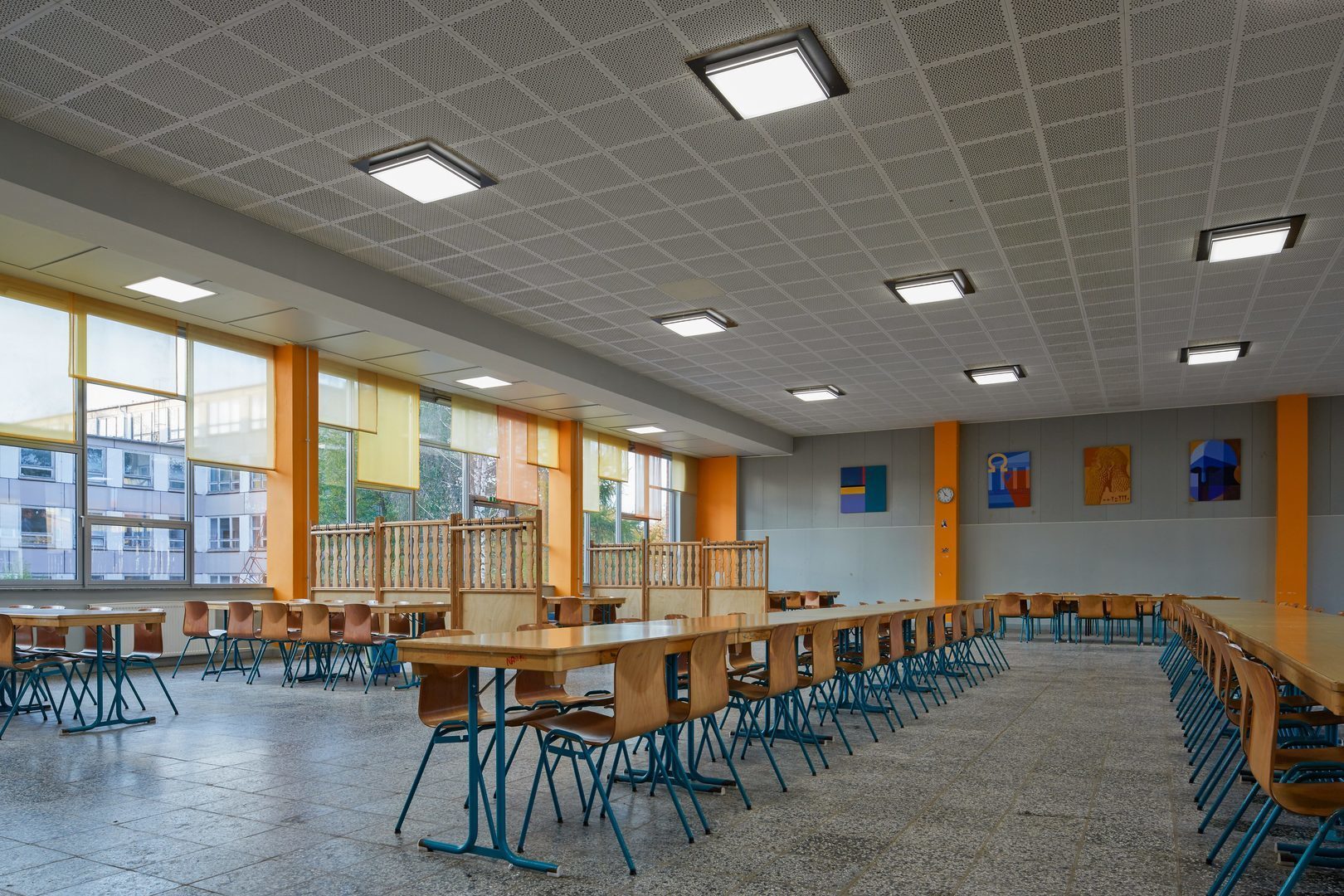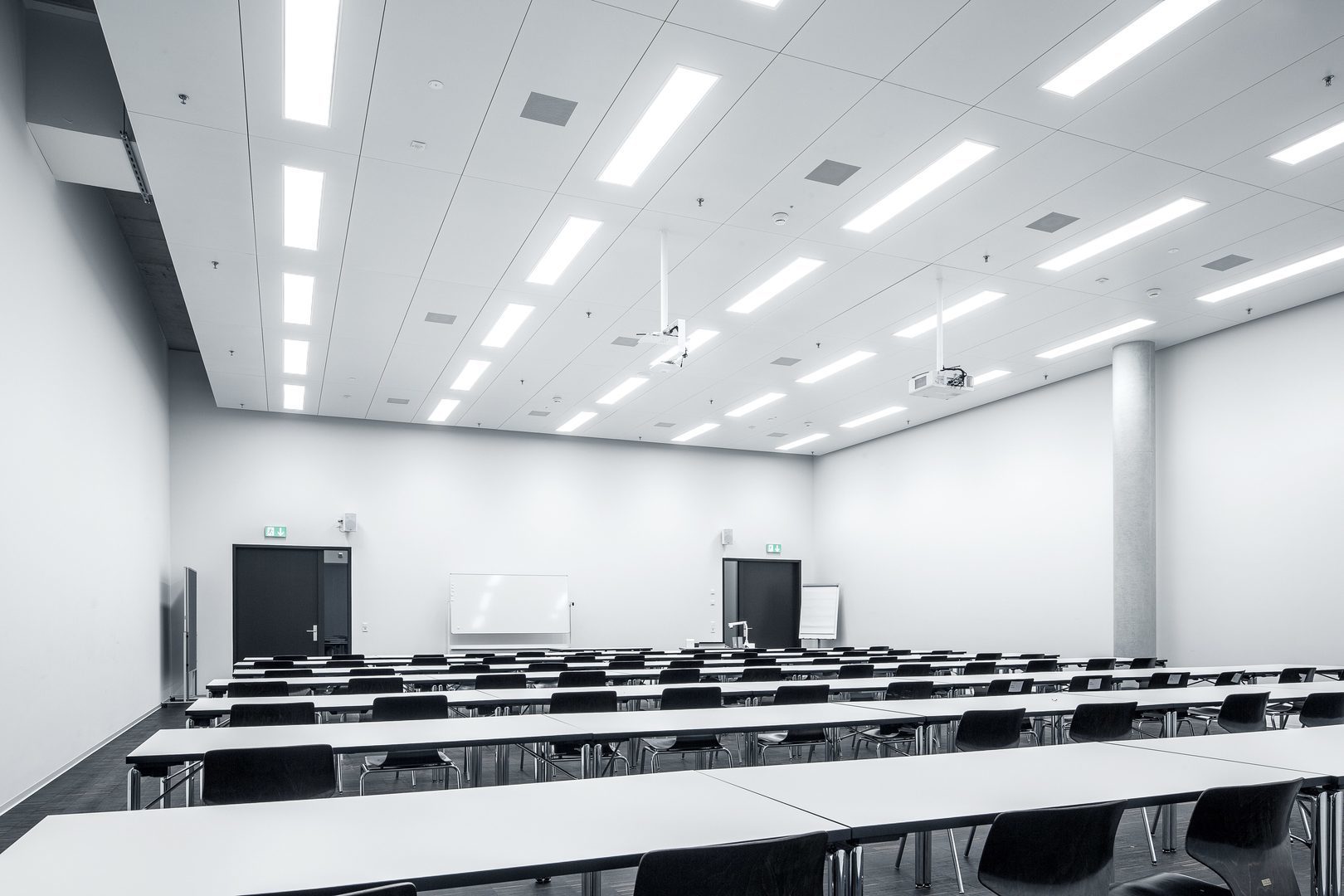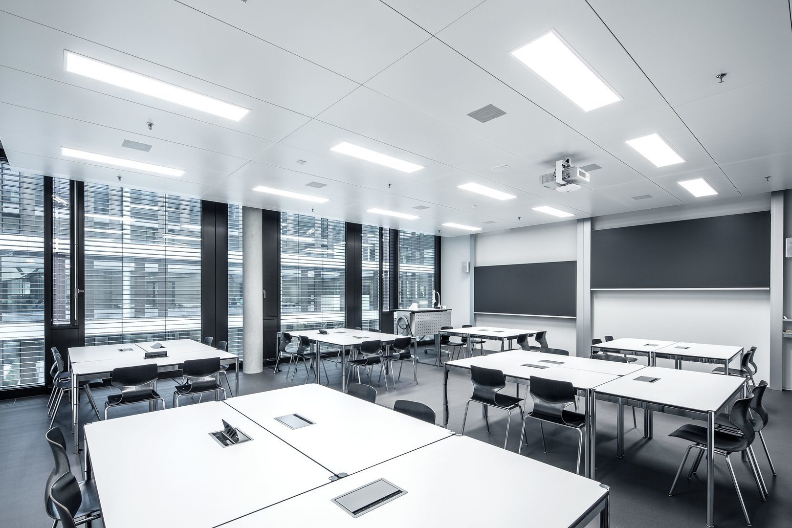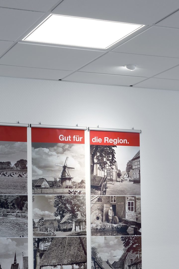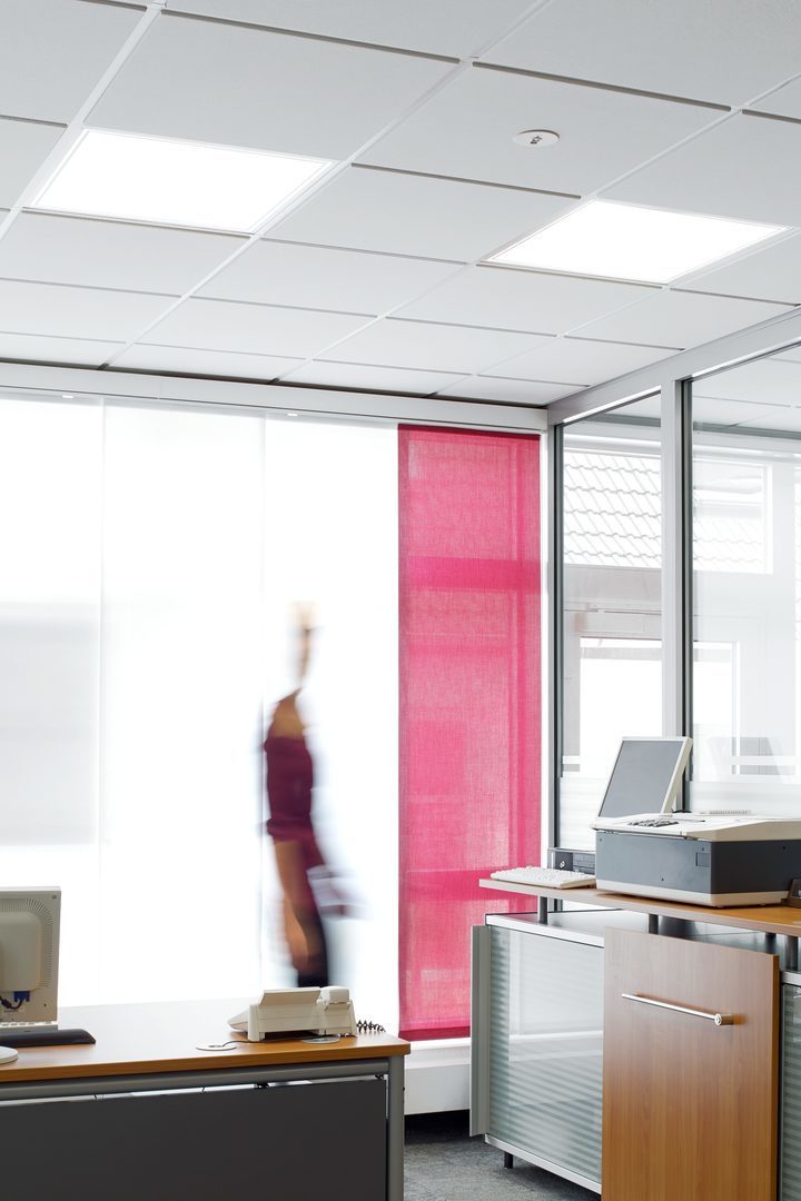 Med högeffektiva CDP-mikroprismor. Direkt ljusdistribution. Bländningsutvärdering enligt UGR-klassning (EN 12464-1) < 19. VDU-arbetsstationskompatibel enligt 12464-1 Helt harmonisk ljuseffekt tack vare homogent belyst ljusemission.