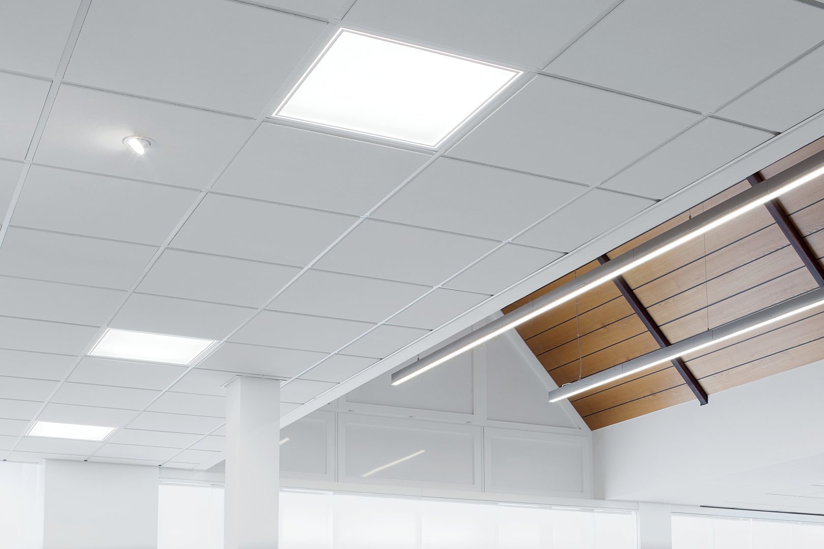 Kan användas universellt i utskurna taköppningar och i systemtak med dolt eller synligt bärverk. Montering i systemtak med asymmetriska, eller dolda bärverk på begäran.