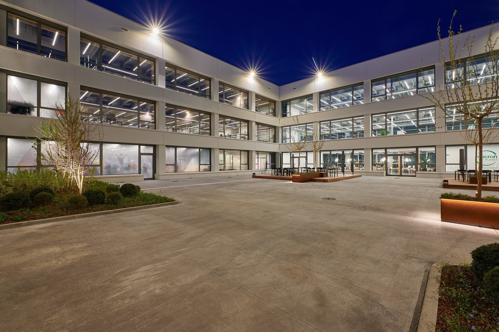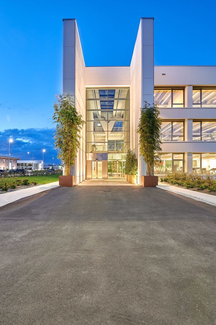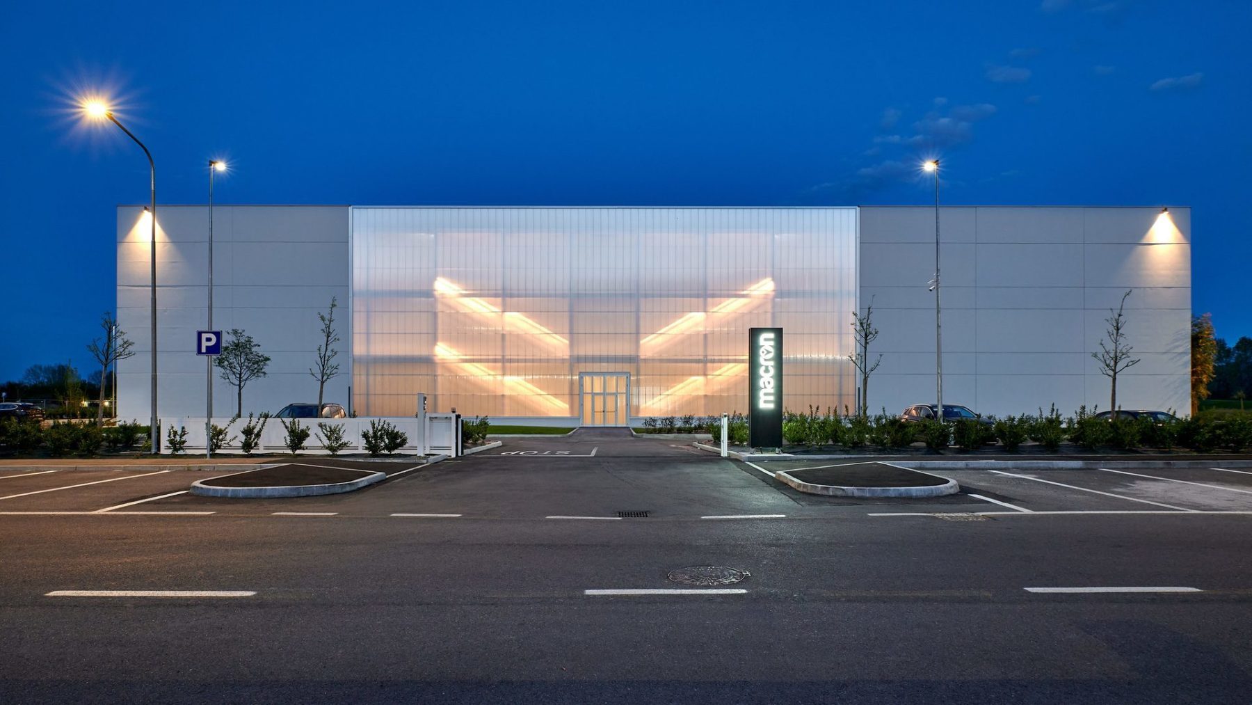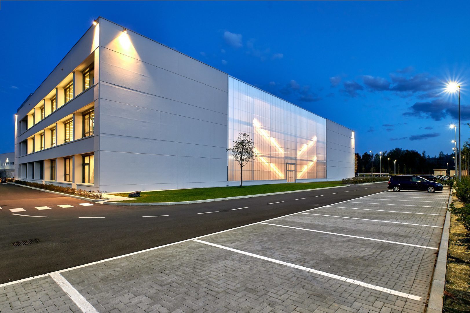 Luminaire luminous flux and light color adjustable in 6 levels (Multilumen, Multicolour). Luminaire luminous flux 1850 lm – 5000 lm, connected load 14 W – 40 W, Power Faktor λ > 0,95, maximum luminous efficiency of luminaire 143 lm/W. Light colour warm white or neutral white, correlated colour temperature (CCT) 3000 K or 4000 K, general colour rendering index (CRI) Ra > 80. Colour locus tolerance (initial MacAdam) ≤ 5 SDCM. Mean rated service life L80 (tq 25 °C) = 50,000 h. The light source is replaceable according to the ecodesign requirements (VO (EU) 2019/2020). Flicker: Pst LM ≤ 1.0 at full load.