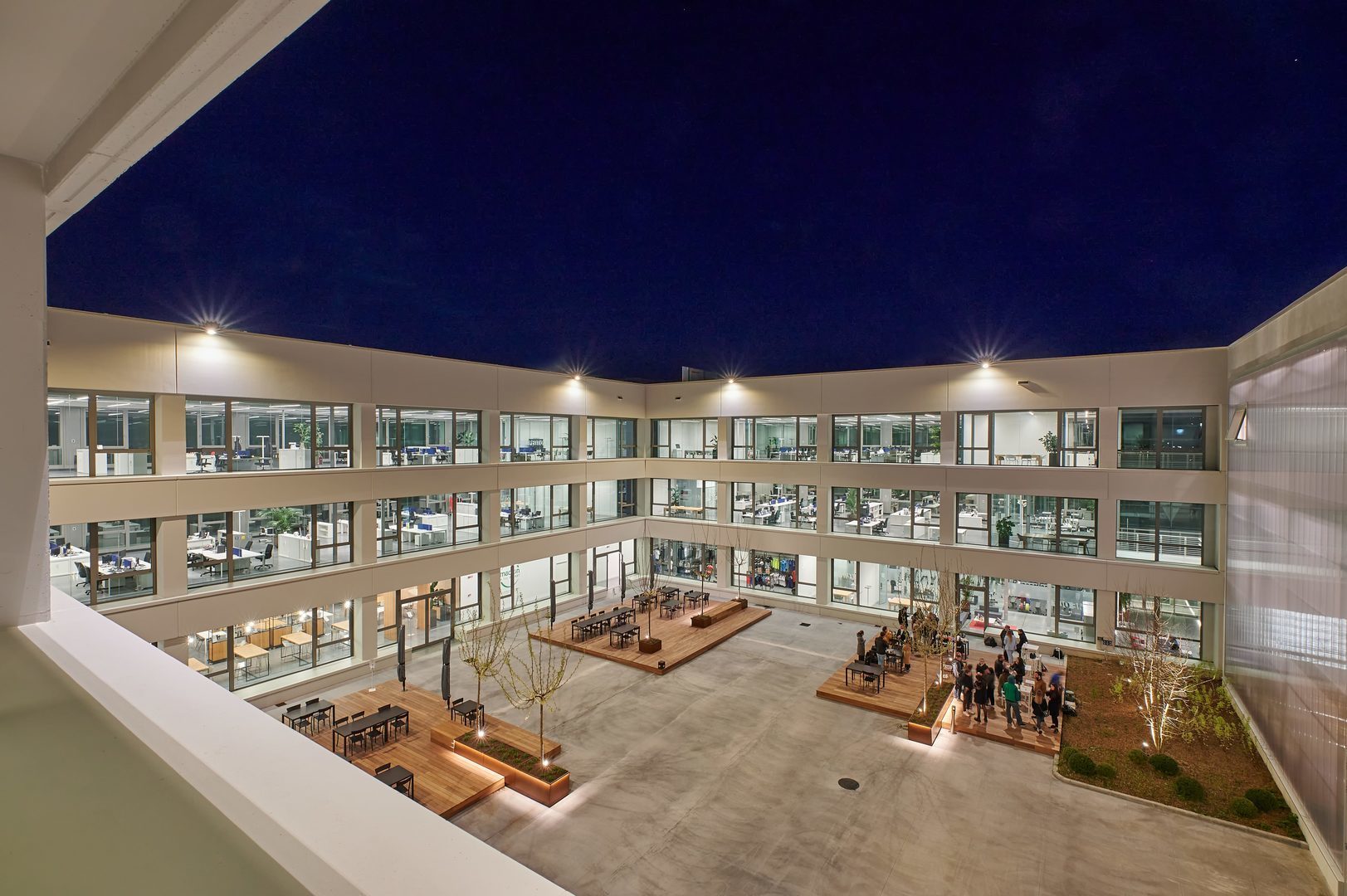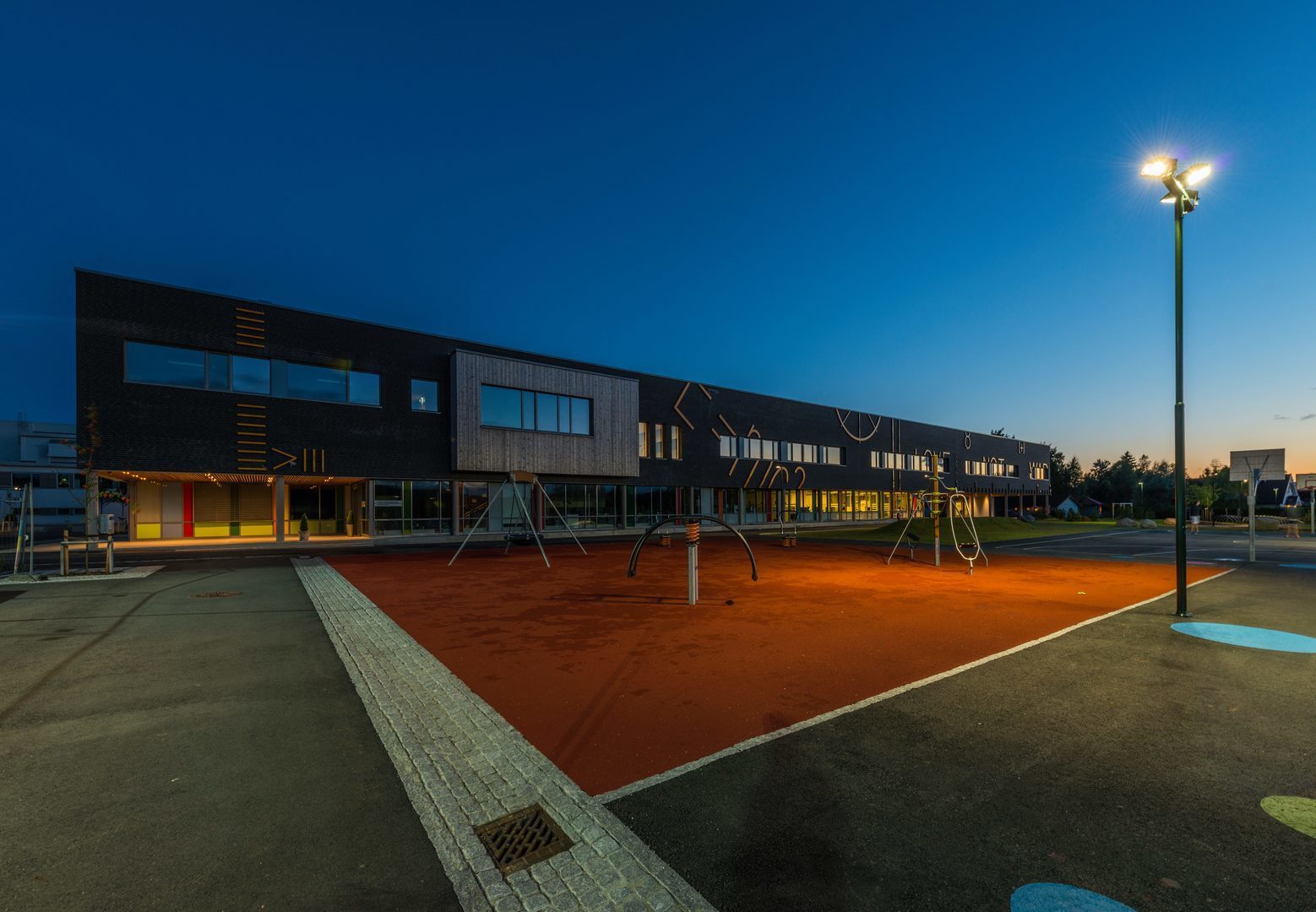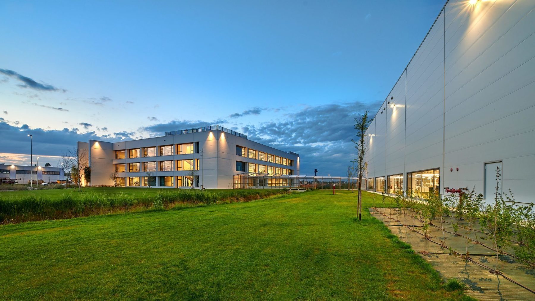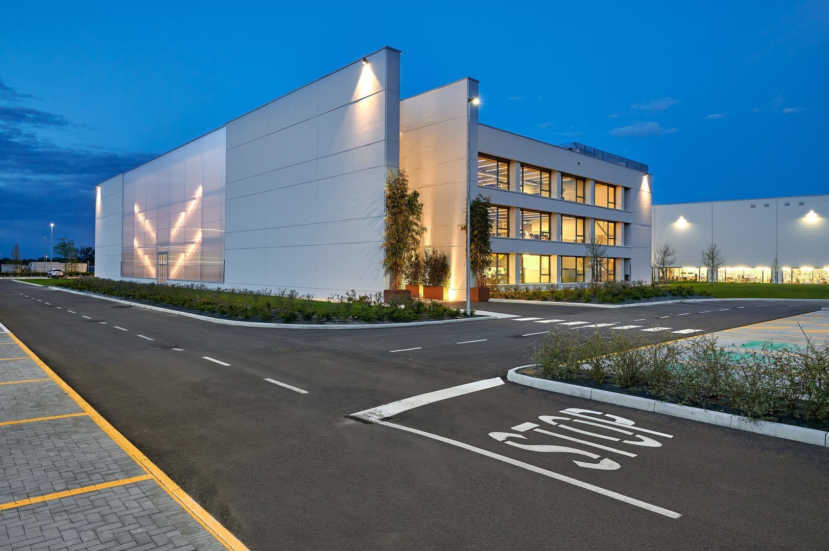Luminaire luminous flux and light color adjustable in 6 levels (Multilumen, Multicolour). Luminaire luminous flux 1850 lm – 5000 lm, connected load 14 W – 40 W, Power Faktor λ > 0,95, maximum luminous efficiency of luminaire 143 lm/W. Light colour warm white or neutral white, correlated colour temperature (CCT) 3000 K or 4000 K, general colour rendering index (CRI) Ra > 80. Colour locus tolerance (initial MacAdam) ≤ 5 SDCM. Mean rated service life L80 (tq 25 °C) = 50,000 h. The light source is replaceable according to the ecodesign requirements (VO (EU) 2019/2020). Flicker: Pst LM ≤ 1.0 at full load.