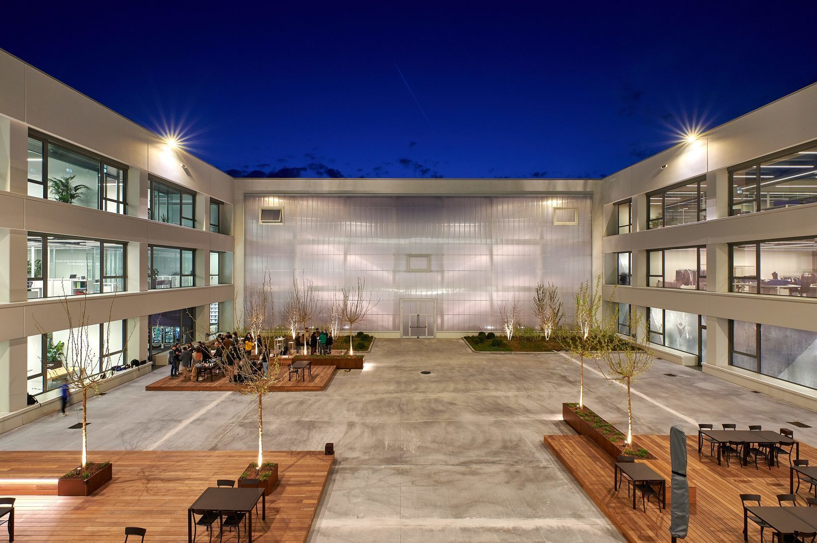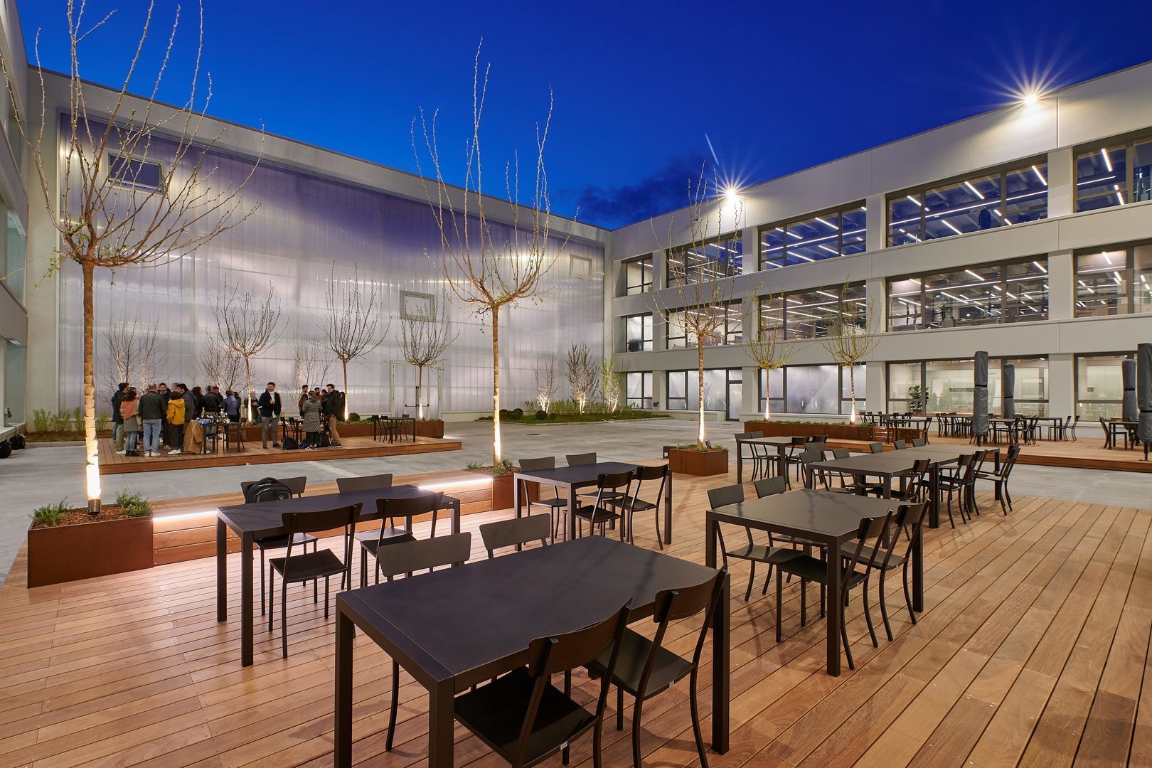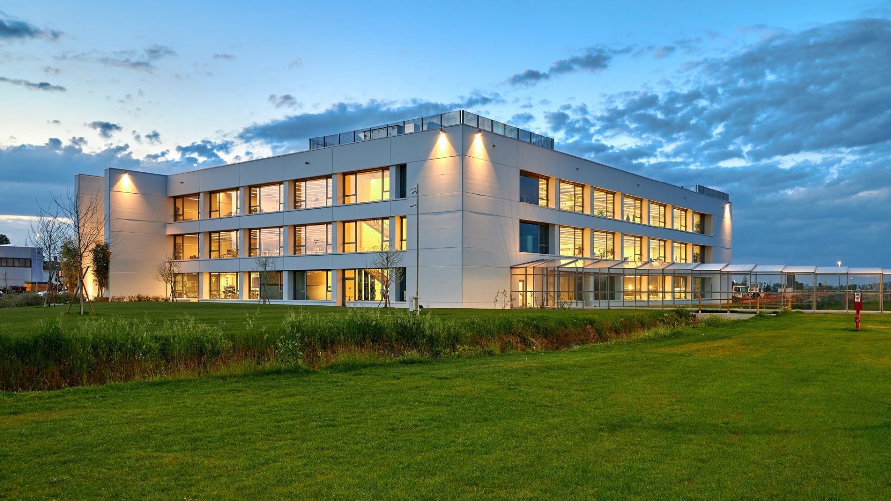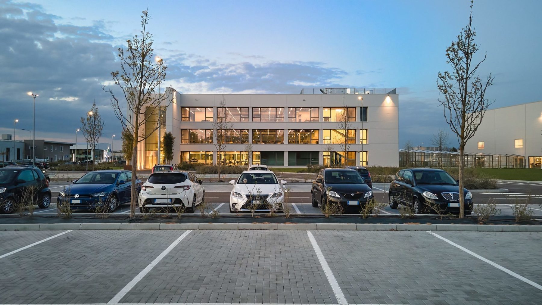 Luminaire luminous flux and light color adjustable in 6 levels (Multilumen, Multicolour). Luminaire luminous flux 1850 lm – 5000 lm, connected load 14 W – 40 W, Power Faktor λ > 0,95, maximum luminous efficiency of luminaire 143 lm/W. Light colour warm white or neutral white, correlated colour temperature (CCT) 3000 K or 4000 K, general colour rendering index (CRI) Ra > 80. Colour locus tolerance (initial MacAdam) ≤ 5 SDCM. Mean rated service life L80 (tq 25 °C) = 50,000 h. The light source is replaceable according to the ecodesign requirements (VO (EU) 2019/2020). Flicker: Pst LM ≤ 1.0 at full load.
