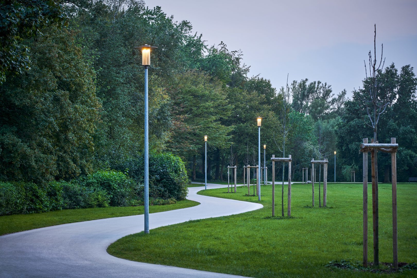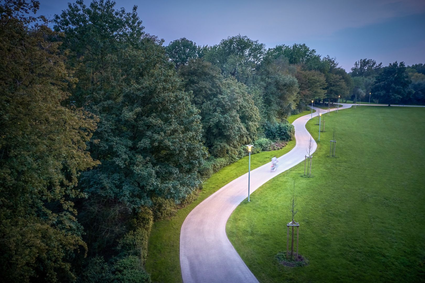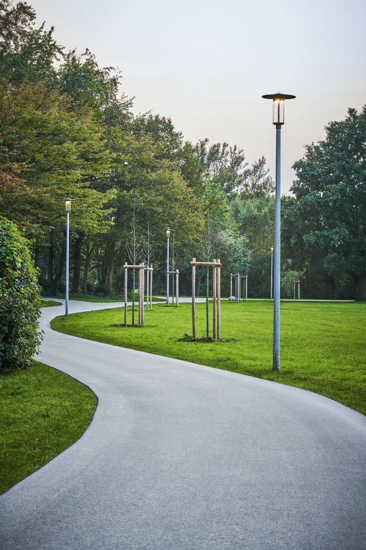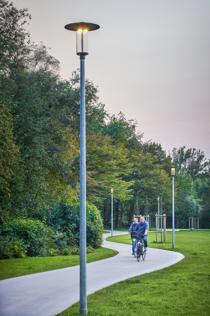 Som MLT-version (Multi-Lens Technology), bestående av högeffektiva UV- och temperaturbeständiga linssystem i 4-faldiga konfigurationer. Med rotationssymmetrisk, symmetrisk eller asymmetrisk ljusintensitetsfördelning. För belysning av gångvägar, särskilt cykelvägar. Ytterligare strålegenskaper finns tillgängliga för flexibel anpassning till kundspecifika belysningsuppgifter. Eftermontering av en bak-/sidoskärm är möjlig som tillbehör som beställs separat.