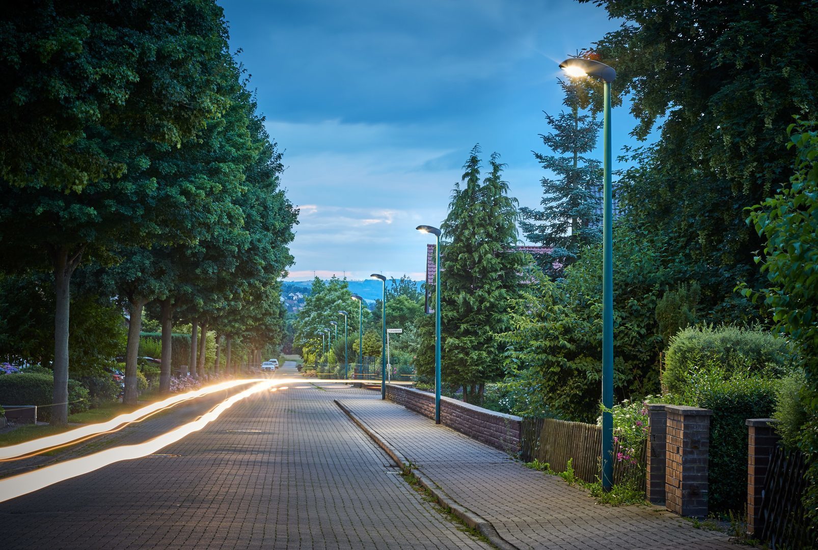 LED-stolptoppsarmatur och armmonterad LED-armatur. Stolptoppsarmatur och armmonterad armatur för stolptopp Ø 76 mm. Lutningsvinkeln (0–25° för stolpmontering, 0–15° för utanpåliggande montering) kan ställas in. Infästningen i stolpen utförs med två fästskruvar av rostfritt stål enl. EN 60598-2-3. Med hjälp av reducerstycken (beställs separat) kan den även monteras på stolpar Ø 42, 48 och 60 mm. Optiskt system av Multi Lens-teknik (MLT). Armaturoptiken består av högeffektiva, UV- och temperaturbeständiga linssystem. Med asymmetriskt bredstrålande ljusfördelning. För belysning av gator enl. P-belysningsklasser. För flexibel anpassning till kundspecifika belysningsuppgifter är ytterligare utstrålningskonfigurationer tillgängliga. En avskärmning på baksidan som beställs som separat tillbehör kan monteras i efterhand. Armaturljusflöde 1000 lm, anslutningseffekt 10,00 W, armaturens ljusutbyte 100 lm/W. Ljusfärg neutralvit, färgtemperatur (CCT) 4000 K, allmänt färgåtergivningsindex (CRI) Ra > 70. Ytterligare LED-ljus färger finns tillgängliga på begäran. Genomsnittlig nominell livslängd L80(tq 25 °C) = 100 000 h. Armaturstomme av tryckgjutet aluminium, tvåfärgad (ljusgrå RAL 7035 och antracitgrå RAL 7016), pulverlackerad, mycket vädertålig. Seewetter geeignete Beschichtung auf Anfrage. LED-modul bestående av ett hus av tryckgjutet aluminium med inbyggda lysdioder och optiska linssystem. Med infattat, klart täckglas av PMMA. LED-modulen och det monterade driftdonet bildar tillsammans en funktionsenhet som snabbt kan bytas ut. Armaturhuset har hävarmslås och kan öppnas utan verktyg. Vindfång Fw (m²) = 0,091. Skyddsklass (EN 61140): II, Kapslingsklass (DIN EN 60529): IP66, Stöthållfasthet enl. IEC 62262: IK09. Med monterad anslutningsledning. Anslutningskabelns längd 8 m. Kabelförskruvning M20 som dragavlastning för kabeldiametrar på 6 till 12 mm. Med elektroniskt driftdon, omställbart. Armaturen uppfyller grundläggande krav i tillämpliga EU-direktiv och Produktsäkerhetslagen, och är dessutom försedd med CE-märkning. Dessutom har ett oberoende kontrollorgan utfärdat ett ENEC-certifikat för armaturen. Vikt: 9,5 kg.