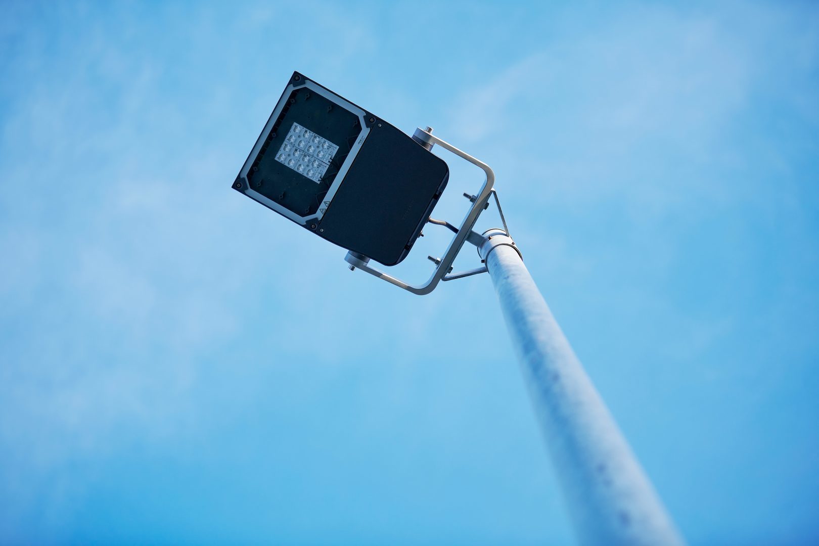 De standardiserade Zhaga-kompatibla socklarna sitter upptill på armaturhuvudet och på den nedre kåpan.