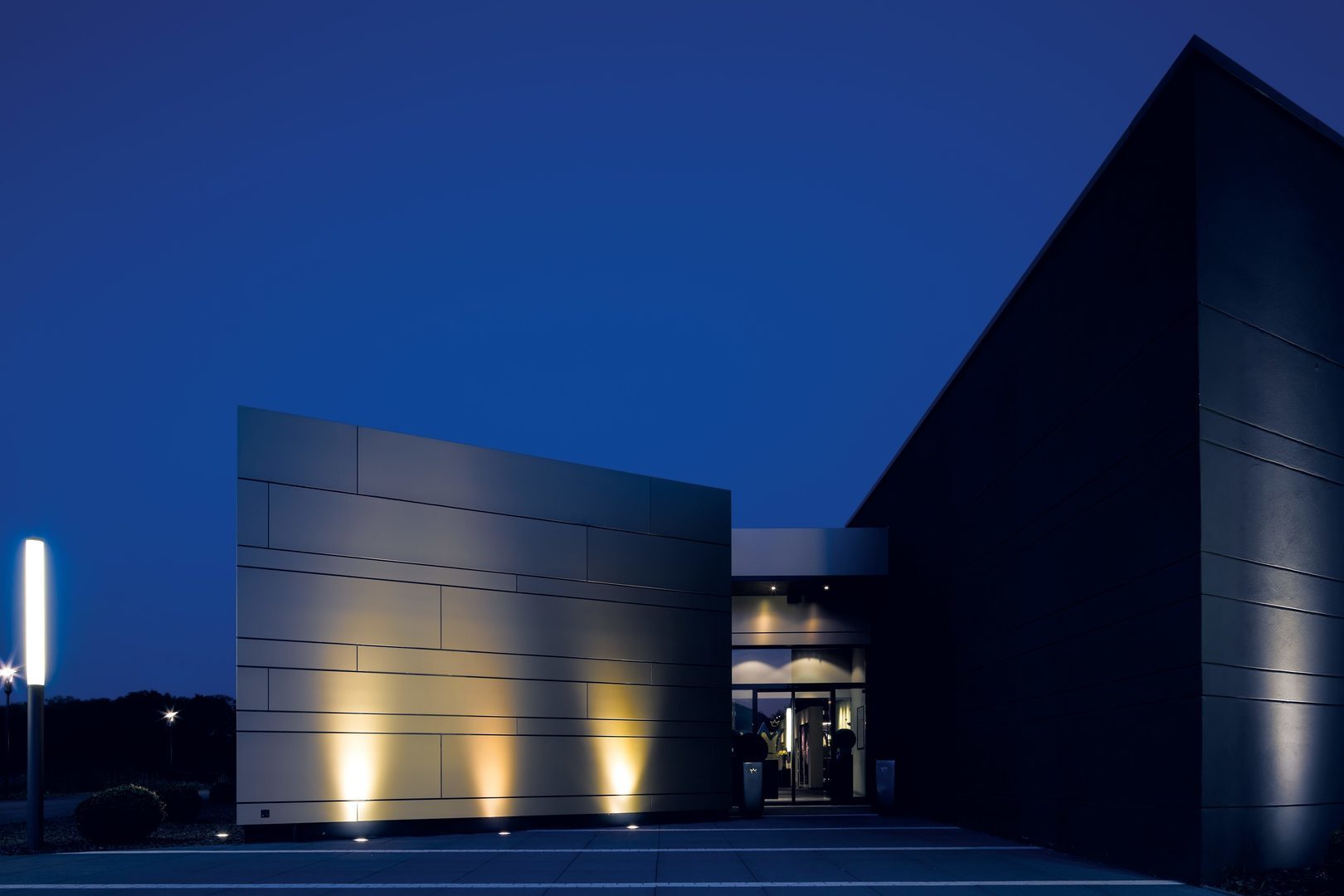 Med olika ljusfördelningar samt med linser eller reflektorteknik. Optiken är vinklingsbar +/-15° i några av modellerna.