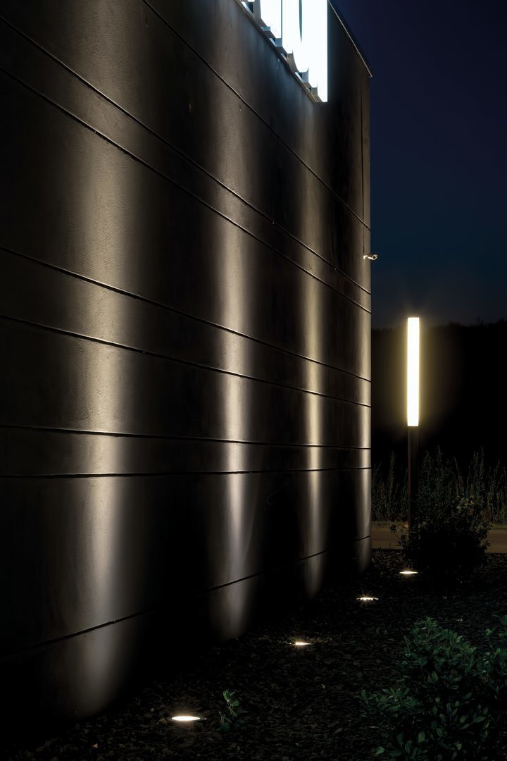 Den markinfällda strålkastaren ska kompletteras med en rund eller fyrkantig täckplåt av rostfritt stål.
