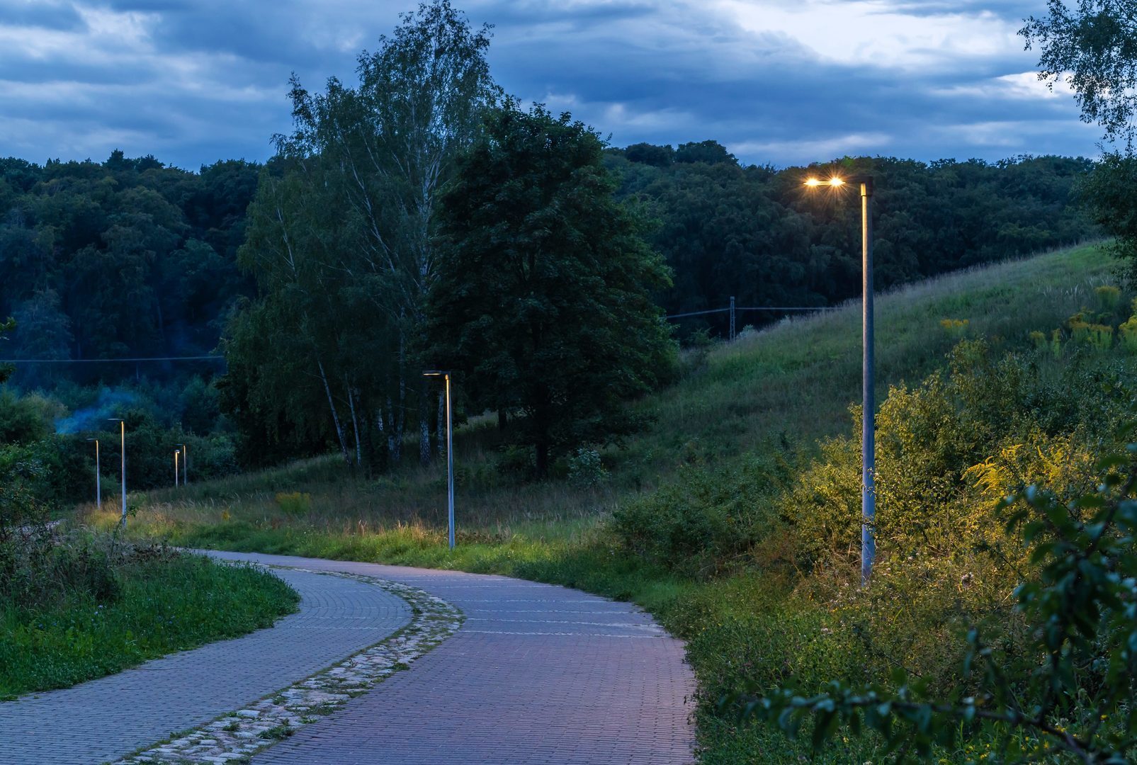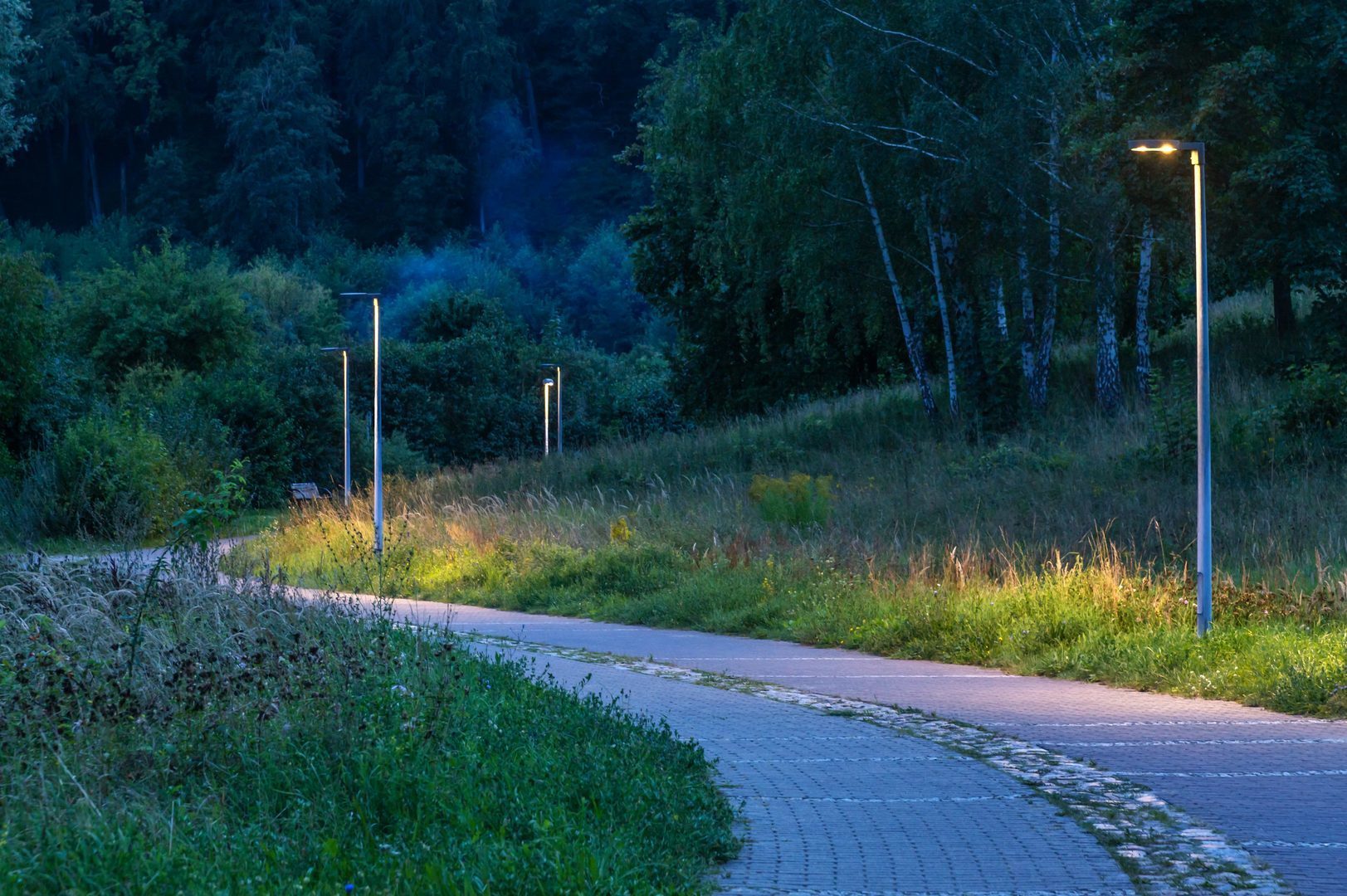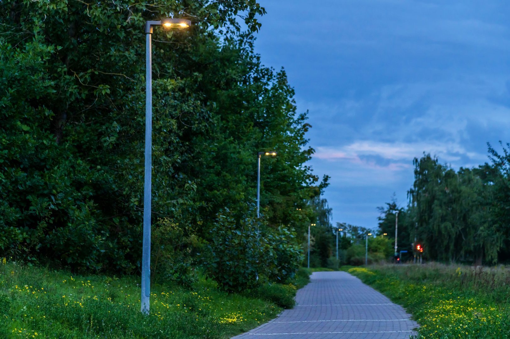 Luminaire luminous flux and light color fixed, with luminous flux stabilization at end of life (CLO). With 2 LED modules. LED module consisting of four LEDs including optical system. Luminaire luminous flux 2200 lm, connected load 18.5 W, Power Faktor λ > 0,9, maximum luminous efficiency of luminaire 119 lm/W. Light colour warm white, correlated colour temperature (CCT) 3000 K, Available on request also in a Tunable White version (2200 K – 4000 K). general colour rendering index (CRI) Ra > 70. Colour locus tolerance (initial MacAdam) ≤ 5 SDCM. Mean rated service life LCLO (tq 35 °C) = 100,000 h. The light source is replaceable according to the ecodesign requirements (VO (EU) 2019/2020). Flicker: Pst LM ≤ 1.0 at full load.