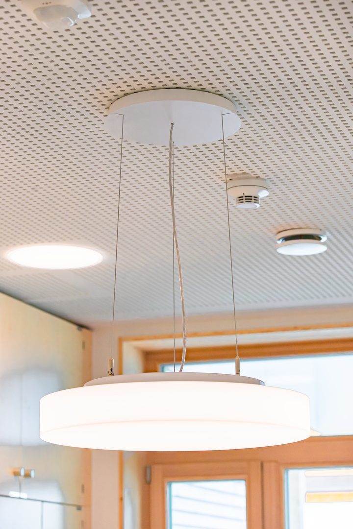 Med cylindrisk kupa av halvgenomskinlig PMMA. Ökad belysningskomfort genom dekorativ takbelysning. Harmonisk ljuseffekt genom jämnt upplyst ljusöppning..