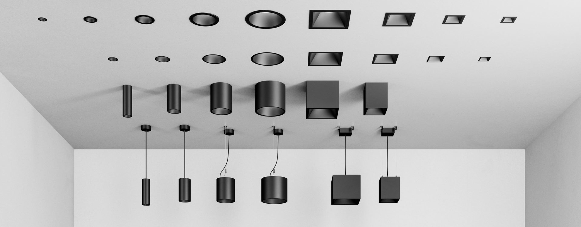 Kompakt LED-downlight i rund (RC) eller fyrkantig (QC) modell. Downlights för infälld montering med kant för sågade taköppningar, alternativt utan kant (RT/QT).