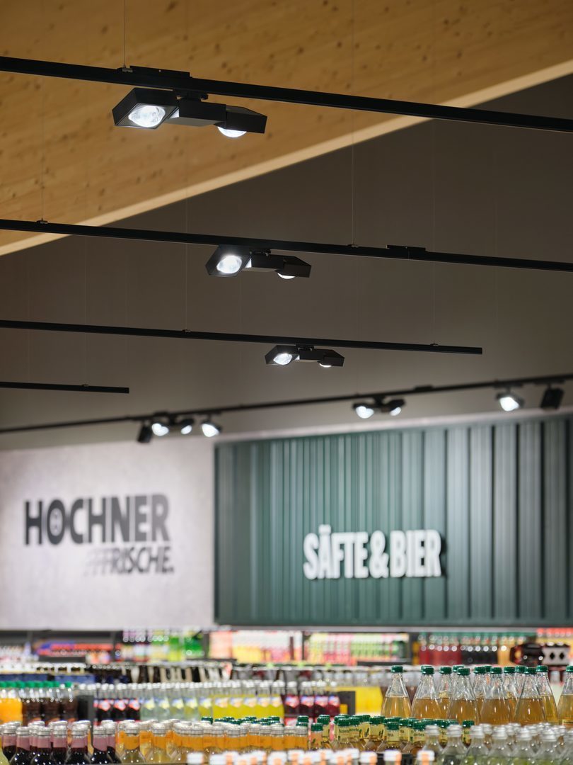 Spotlight för 3-fas skena, med friformslins för accentbelysning. Kan vridas 355° och svängas 110°.